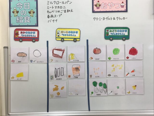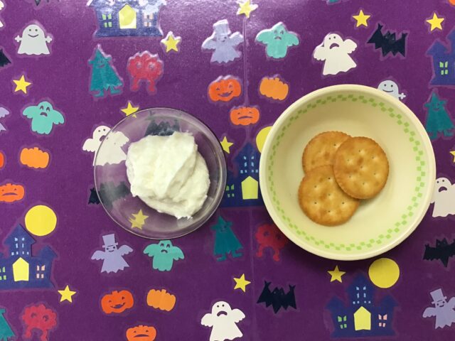 ☆給食・ミルクロールパン・ミートマカロニ・キャベツのごま和え・春雨スープ・バナナ ☆おやつ・クリーミーヨーグルト&クラッカー